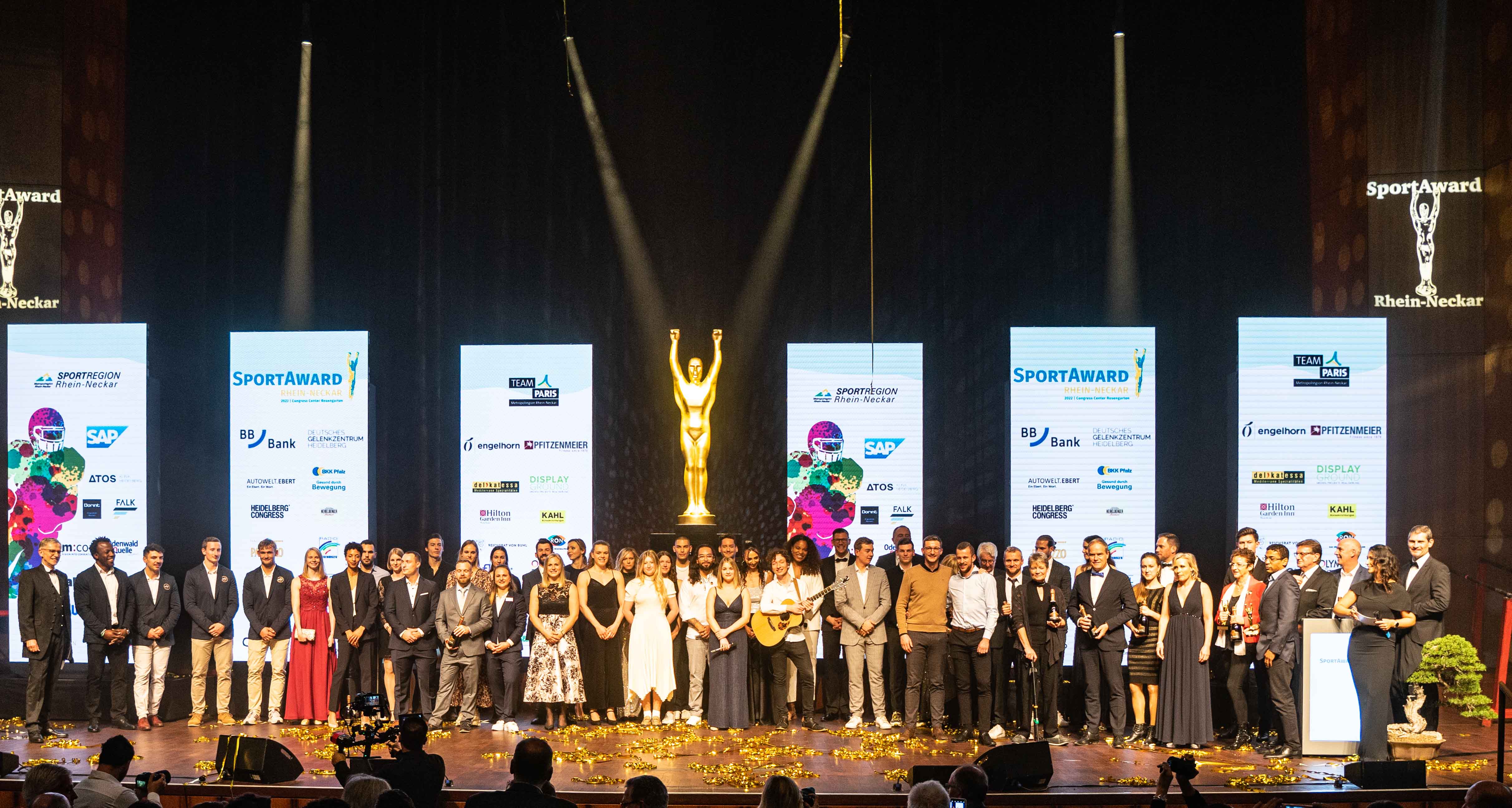Zu den großen Gewinnern des Abends gehörte der regionale Schwimmsport. Gleich zweimal punktete der Heidelberger Schwimmverein SV Nikar, der neben der Ehrung als Top Mannschaft für seine Frauenstaffel auch den Award für das Top Talent Zoe Vogelmann erhielt. Erfolgscoach Branislav Ignjatovic, der die MLP Academics in die Basketball-Bundesliga führte und mit ihnen die Klasse hielt, sicherte sich die Trophäe des Top Trainers. Die Weitsprung-Weltmeisterin Malaika Mihambo darf die Trophäe in der Kategorie Top Sportlerin nach 2016, 2018 und 2021 bereits zum vierten Mal in Folge ihr Eigen nennen.