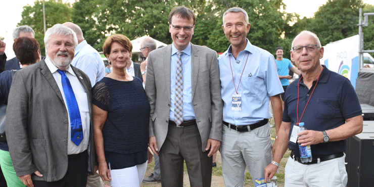 Der Präsident des Badischen Turner-Bundes, Gerhard Mengesdorf (zugleich Präsidiumsmitglied beim BSB Nord) freute sich über den Besuch der neuen Mannheimer Sportkreisvorsitzenden Dr. Sabine Hamann, den Staatssekretär aus dem Ministerium für Kultus, Jugend und Sport Volker Schebesta, BSB-Präsident Martin Lenz und BSB-Geschäftsführer Wolfgang Eitel.