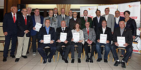 Sinsheim-Hilsbach. Zur Auszeichnung verdienter Vereinsfunktionäre der Sportkreise Heidelberg, Mannheim und Sinsheim hatte der Badische Sportbund Nord (BSB) am 25.10.2018 zu einem Ehrungsabend in das Clubhaus des SV Hilsbach geladen. „Heute haben wir nur ein Ziel: einen harmonisch-schönen Abend für euch zu gestalten“, betonte der Vorsitzende des gastgebenden Sportkreises Sinsheim, Josef Pitz, bei der Begrüßung der Ehrengäste. BSB-Ehrenpräsident Heinz Janalik freute sich in der anschließenden Laudatio zunächst darüber, dass mit 15 Personen ein Großteil der zu Ehrenden persönlich erschienen war. Janalik unterstellte allen Anwesenden, dass sie am besten wüssten, „dass ein intaktes Vereinsleben nachhaltig zum Lebenswert einer Gesellschaft und Kommune und damit zur positiven Lebensgestaltung des Einzelnen beitragen kann. (…)“. Er würdigte die Leistung der Protagonisten mit den Worten: „Was Sie im Verlauf vieler Jahre im Ehrenamt getan und geleistet haben, ist ein Geschenk für jeden Verein und die ihn umgebende Region.“ Lediglich die Tatsache, dass nur eine weibliche Person unter den Ausgezeichneten war, bedauerte der BSB-Ehrenpräsident ausdrücklich. „Frauen in Vereinen haben schon immer maßgeblich erfolgreiche Arbeit mitbestimmt. Und man kann mit Fug und Recht behaupten, dass es in Zukunft Vereinsarbeit ohne Frauen in Führungspositionen gar nicht geben kann“, so Janalik. Nun folgte, nach Sportkreisen geordnet, die Übergabe goldener Ehrennadeln und Urkunden an die verdienten Funktionäre.